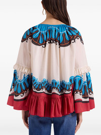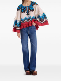x Mother Boho blouse Highlights - Blue - Abstract pattern print - Round neck - Long sleeves - Ruffle hem Made in Italy Composition Cotton 100%