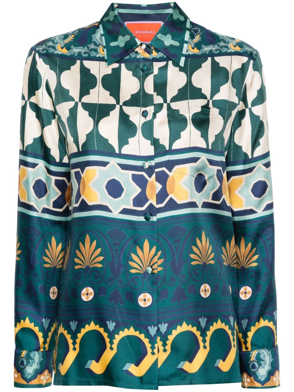 Boy graphic-print shirt Highlights - Dark green/multicolour - Silk - Satin finish - Twill weave - All-over graphic print - Classic collar - Chest patch pocket - Long sleeves with buttoned cuffs - Fabric-covered buttons - Side slits - Straight hem - Front button fastening Made in Italy Composition Silk 100% SIZE & FIT Model measurements Height 5 ft 11 in(1.8 m) Bust/Chest 33.07 in(84 cm) Hips 37.4 in(95 cm) Waist 25.19 in(64 cm) FittingInformation Designed for a slim fit that sits just away from the body offering a close yet comfortable fit Made from a lightweight non-stretch fabric This piece fits true to size – take your usual size