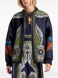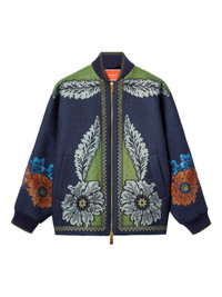 Brooklyn bomber jacket Highlights - Navy blue - Virgin wool - Floral print - Zip fastening - Ribbed collar - Ribbed cuffs Made in Italy Composition Virgin Wool 100% Washing instructions Read Manufacturer Guidelines