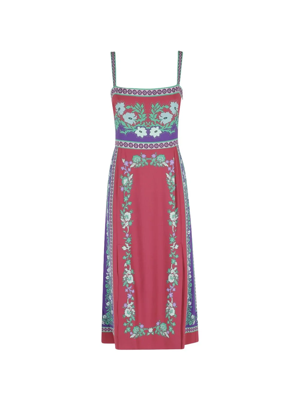 Buy Me A Martini floral print midi dress Highlights - Pink and multicolour - Floral print - Square neck - Strap sleeves - Trim detail Made in Italy Composition Viscose 96%, Elastane 4% Washing instructions Read Manufacturer Guidelines