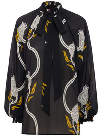Cerere blouse Highlights - Black/white - Crepe texture - Melograno-print - High neck - Sash detail - V-neck - Long puff sleeves - Elasticated cuffs Made in Italy Composition Viscose 100%