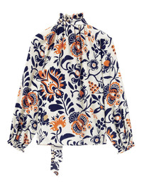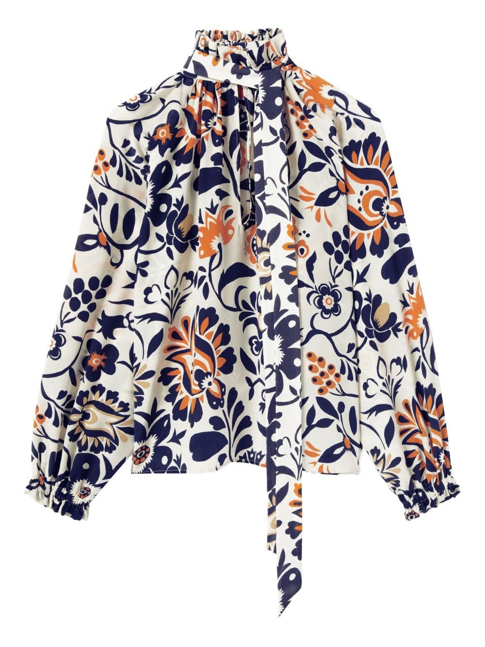 Cerere ruffled high-neck blouse Highlights - Off-white - Floral print - Ruffled neckline - Long sleeves - Pussy-bow fastening - Elasticated cuffs Made in Italy Composition Viscose 100%