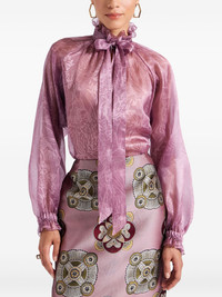 Cerere ruffled high-neck blouse Highlights - Dusty pink - Floral print - High neck - Ruffled collar - Bow tie - Long sleeves - Elasticated cuffs Made in Italy Composition Silk 100%