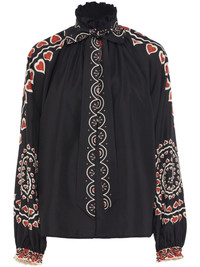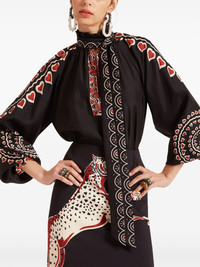 Cerere silk Placee-print blouse Highlights - Black/multicolour - Cotton - Voile - Heart print - Animal print - V-neck - Long puff sleeves - Detachable neck sash Made in Italy Composition Silk 100%