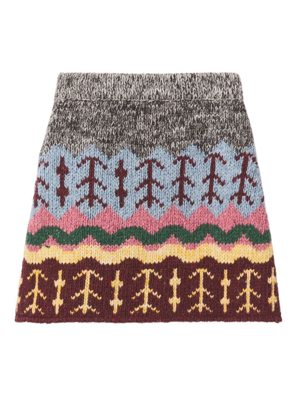 Chalet knitted mini skirt Highlights - Multi-colour - Wool blend - Patterned - Tree motif - Elasticated waistband Made in Italy Composition Wool 75%, Polyamide 20%, Viscose 5% Washing instructions Read Manufacturer Guidelines