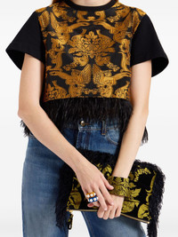 cherub-print clutch bag Highlights - Black/gold-tone - Patterned jacquard - Zip-fastening compartment - Rectangle shape - Main compartment Made in Italy Composition Outer: Viscose 34%, Cotton 23%, Recycled Polyester 21%, Polyester 20%, Ostrich Feather 2% SIZE & FIT Measurement HEIGHT 9.05 in(23 cm) WIDTH 12.59 in(32 cm)