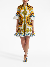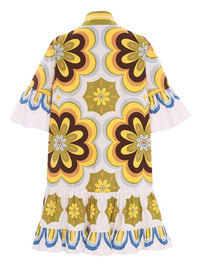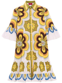 Choux geometric-print dress Crafted in Italy from cotton poplin, this dress showcases La DoubleJ's penchant for an eye-catching print. Decorated with the brand's hand-placed Ciccio print, it features fluted short sleeves and a tiered skirt for added drama. Highlights - Multicolour - Cotton - Poplin texture - Geometric print - Dropped waist - Classic collar - Front button fastening - Flute sleeves - Tiered skirt - Thigh-length Made in Italy Composition Cotton 100% SIZE & FIT Measurement HIPS 52.75 in(134 cm) LENGTH 38.18 in(97 cm) WAIST 48.81 in(124 cm)