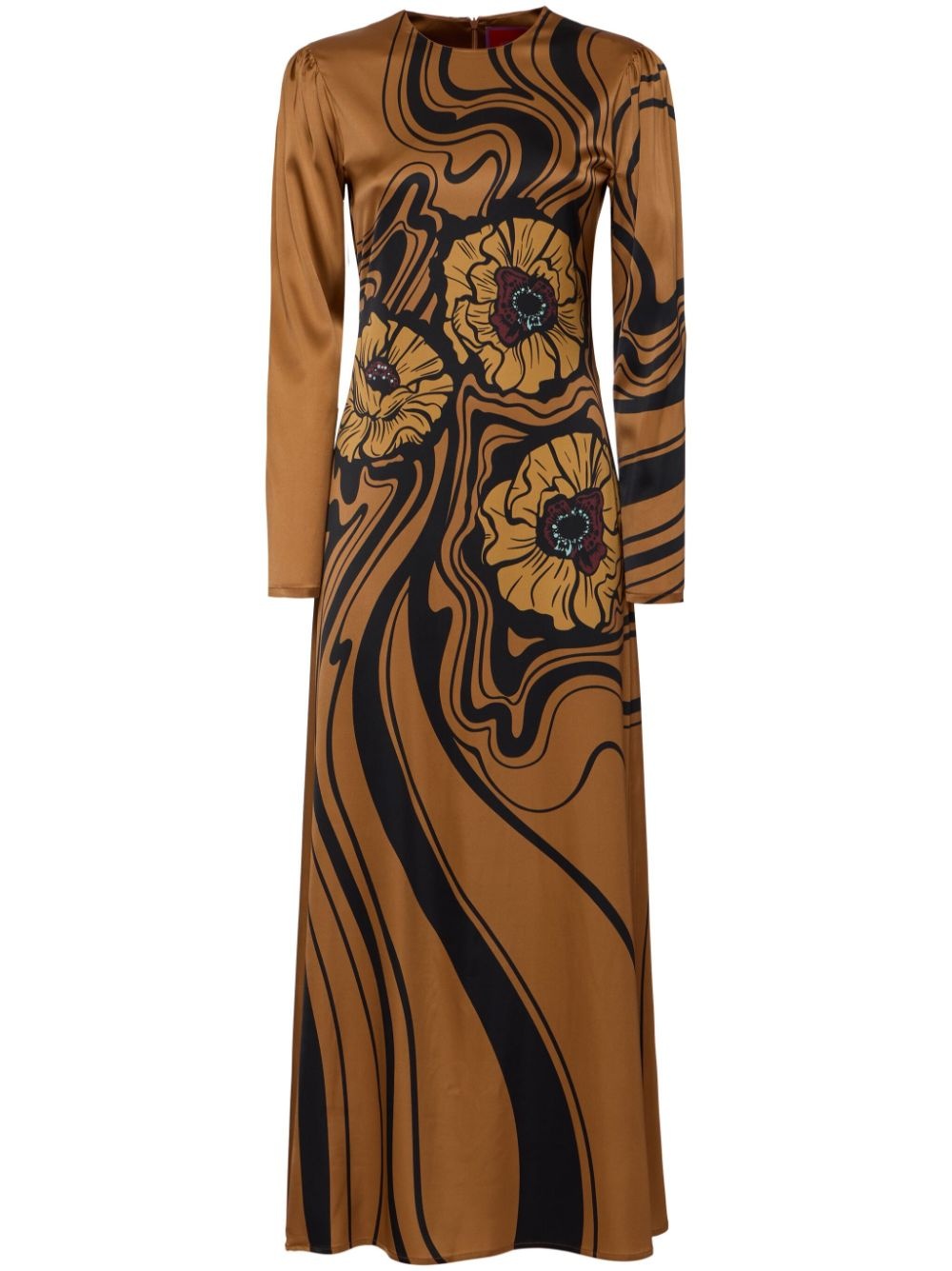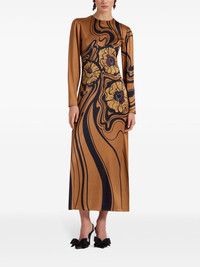 Clingy Swing maxi dress Highlights - Orange - Satin finish - All-over graphic print - Concealed rear zip fastening - Crew neck - Long sleeves - Straight hem - Long length Made in Italy Composition Viscose 96%, Elastane 4%