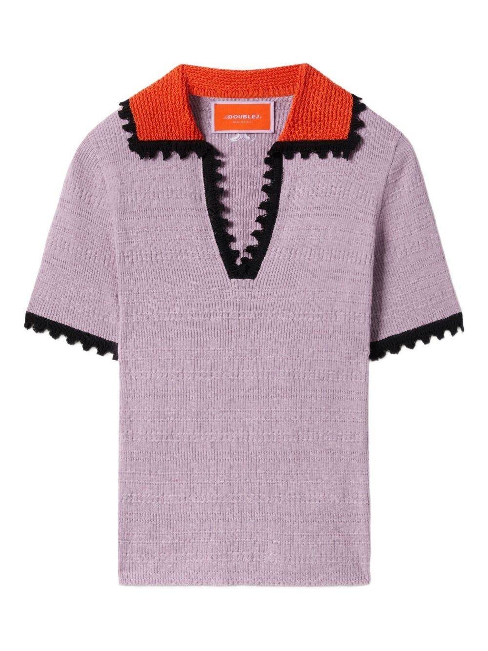 colour-block T-shirt Highlights - Lavender - Contrasting collar - Scalloped detailing - Short sleeves - V-neck Made in Italy Composition Cotton 85%, Cashmere 15% Washing instructions Read Manufacturer Guidelines