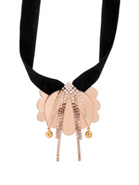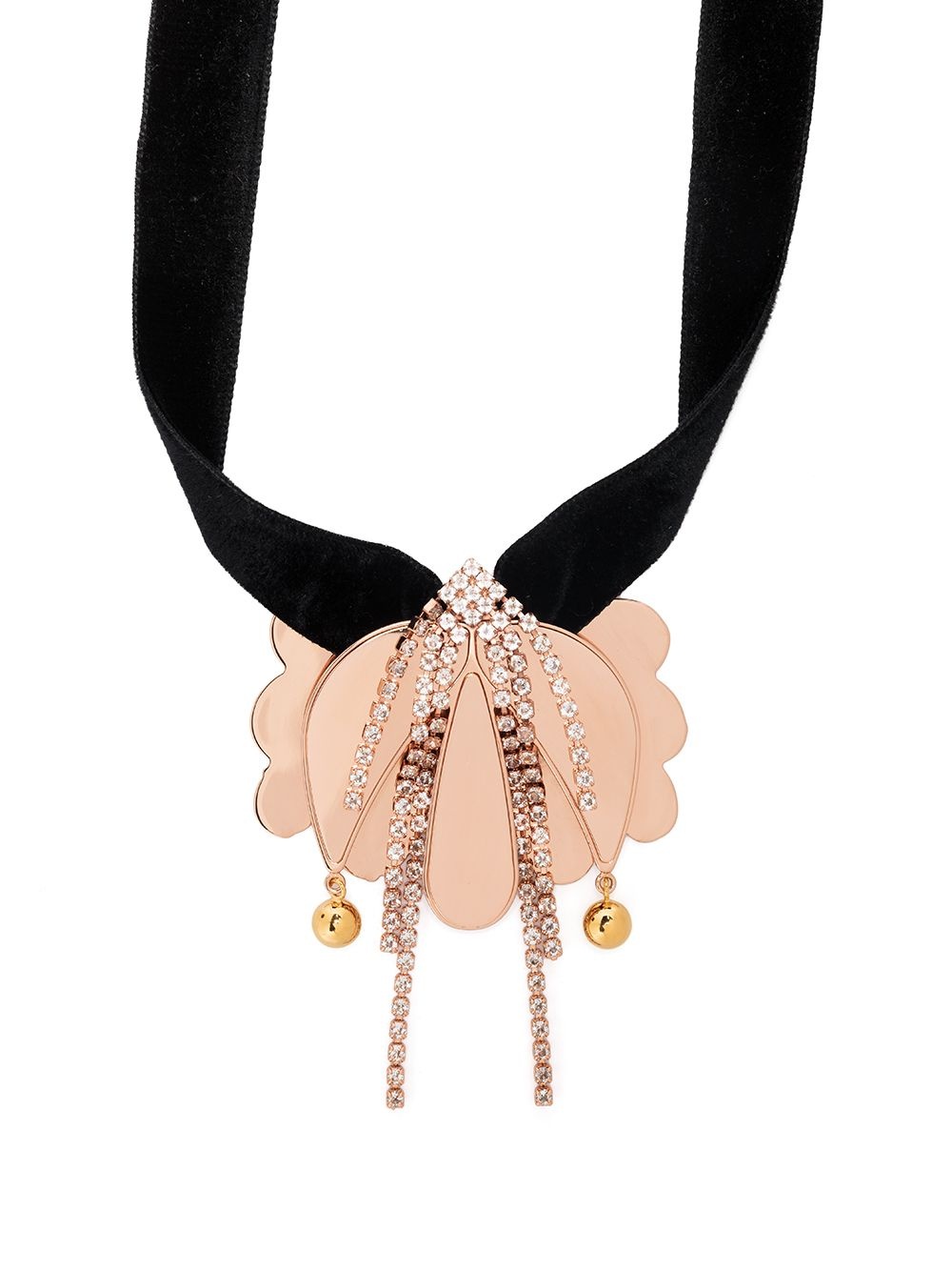 draped floral necklace gold brass-blend gold-tone hardware draped design statement pendant Made in Italy SIZE & FIT Model measurements Height 5 ft 10 in(1.78 m) Bust/Chest 33.07 in(84 cm) Hips 36.61 in(93 cm) Waist 24.8 in(63 cm)