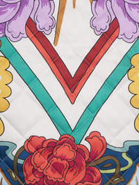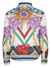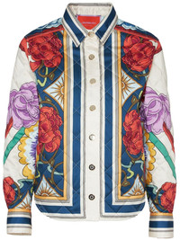 Edie floral-print quilted jacket Cut to a playful cropped silhouette, the Edie jacket from La DoubleJ is printed with a floral motif inspired by Milan's lavish Liberty era. It's crafted from lightweight, glossy twill and decorated with vibrant pops of blue, red, purple, green and yellow that emphasise the exuberant mood. Highlights - White/multicolour - Quilted - All-over floral print - Stripe trim - Straight-point collar - Front button fastening - Long sleeves - Buttoned cuffs - Two side slit pockets - Curved hem Made in Italy Composition Polyester 100% SIZE & FIT Measurement SLEEVE LENGTH 23.22 in(59 cm) LENGTH 24.8 in(63 cm)