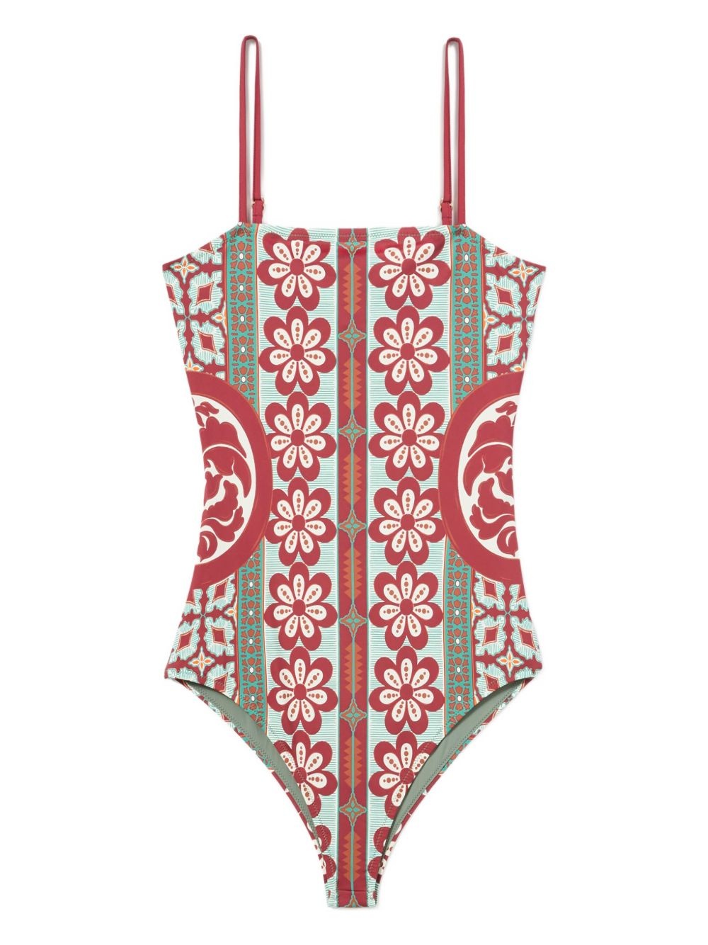 Elle floral-print swimsuit Highlights - Green - Floral print - Thin straps - Square neckline - Be mindful to try on swimwear over your own garments. Made in Italy Composition Polyamide 74%, Elastane 26%