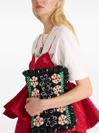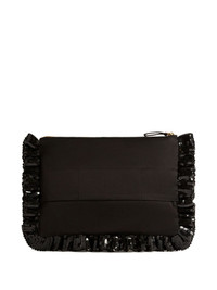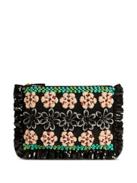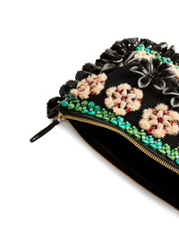 embroidered clutch bag Highlights - Black - Single flat side handle - Zip fastening - Main compartment - Sequin embellishment Imported Composition Outer: Viscose 70%, Plastic 9%, glass 8%, Metal (Other) 7%, Acrylic 4%, Cotton 2% SIZE & FIT Measurement HEIGHT 9.05 in(23 cm) WIDTH 12.59 in(32 cm)