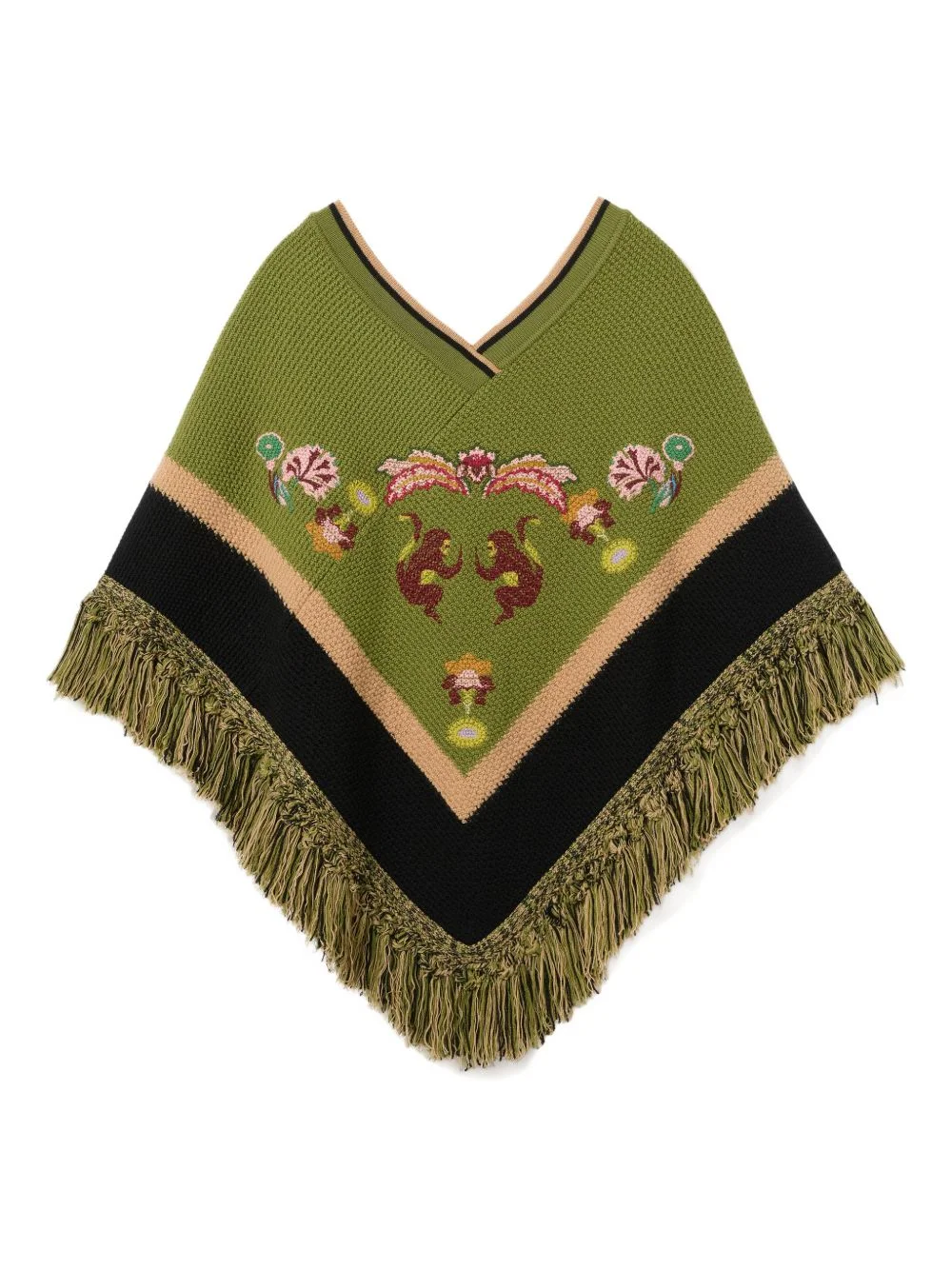 Embroidered Fringed Dreamcatcher Poncho Highlights - Brown - Embroidered detail - Fringed hem - V-neck - Striped detail - Knitted construction Made in Italy Composition Wool 100% Washing instructions Read Manufacturer Guidelines