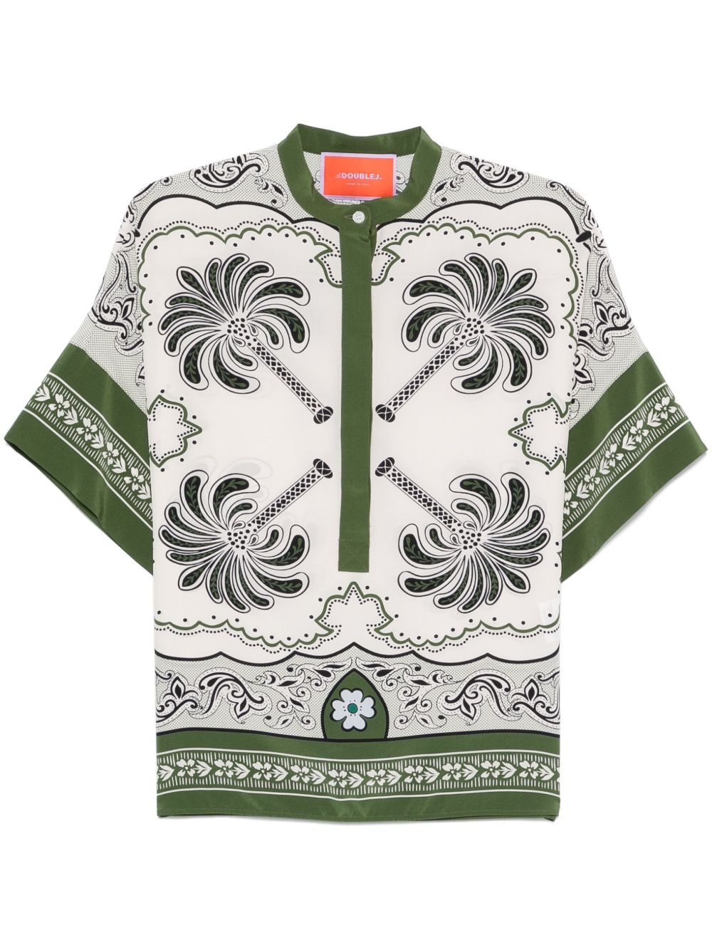 Estelle blouse Highlights - Ecru - Front button placket - Band collar - Short sleeves - Short side slits Made in Italy Composition Silk 100% SIZE & FIT Model measurements Height 5 ft 10 in(1.78 m) Bust/Chest 33.46 in(85 cm) Hips 36.22 in(92 cm) Waist 23.22 in(59 cm) FittingInformation Designed to be unstructured, offering a loose fit throughout Made from a lightweight non-stretch fabric