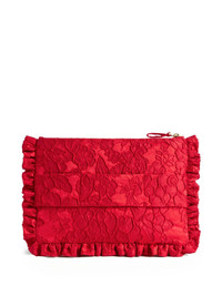 floral-lace clutch bag Highlights - Red - Single flat side handle - Zip fastening - Main compartment Made in Italy Composition Outer: Polyester 97%, Polyamide 3% SIZE & FIT Measurement HEIGHT 9.05 in(23 cm) WIDTH 12.59 in(32 cm)