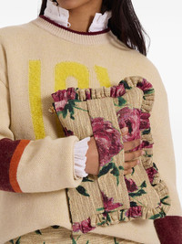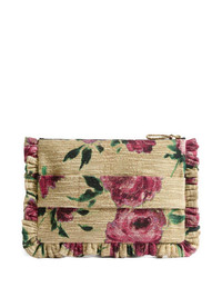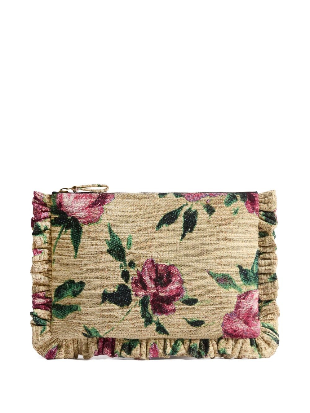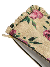 floral-pattern clutch bag Highlights - Light beige - Top zip fastening - Single flat side handle - Full lining - Ruffled trim Made in Italy Composition Outer: Cotton 61%, Polyester 39% SIZE & FIT Measurement HEIGHT 9.05 in(23 cm) WIDTH 12.59 in(32 cm)