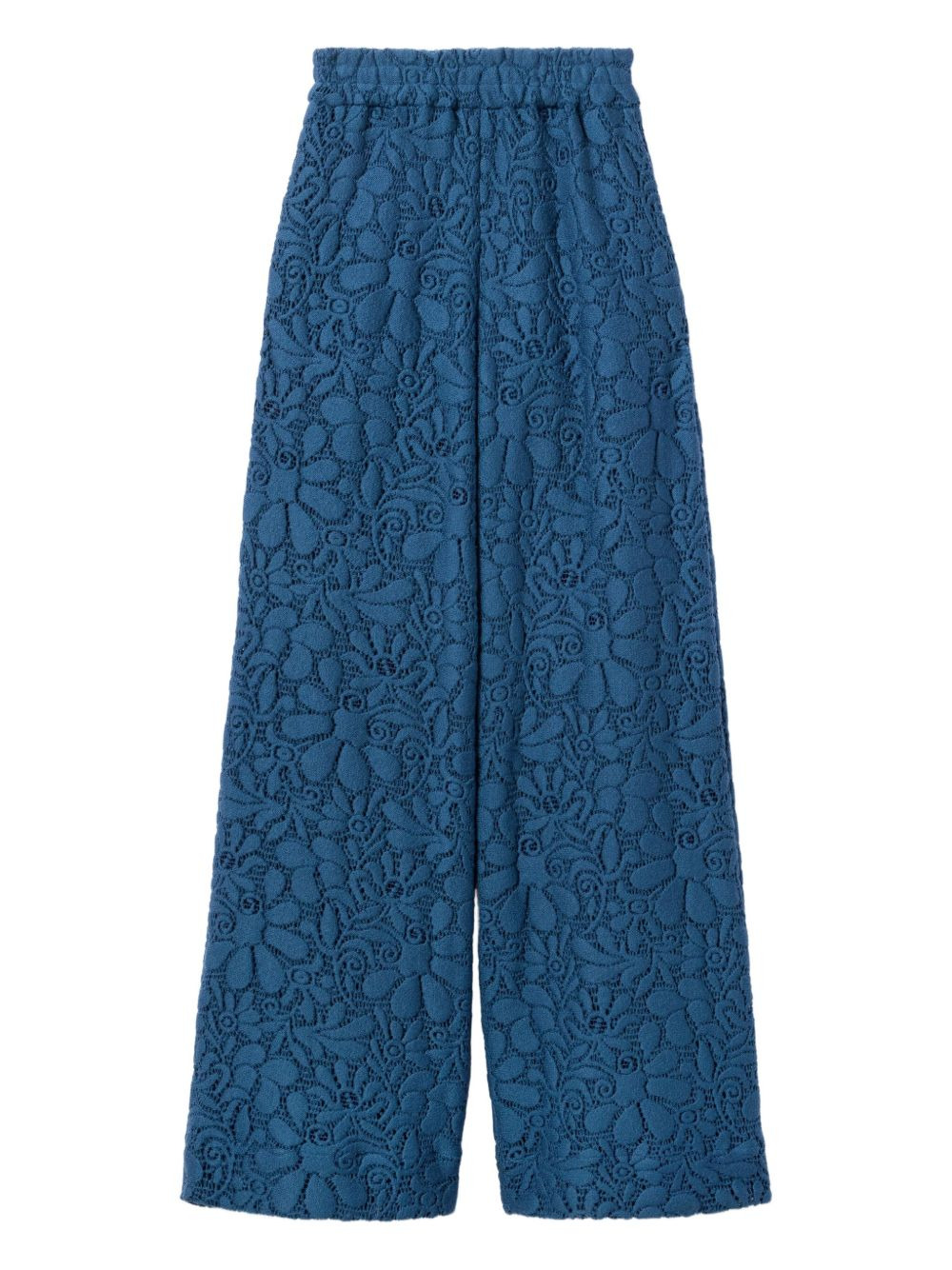 floral-pattern lace trousers Highlights - Blue - Floral-pattern - Lace - Elasticated waistband Made in Italy Composition Wool 90%, Polyamide 10% Washing instructions Read Manufacturer Guidelines