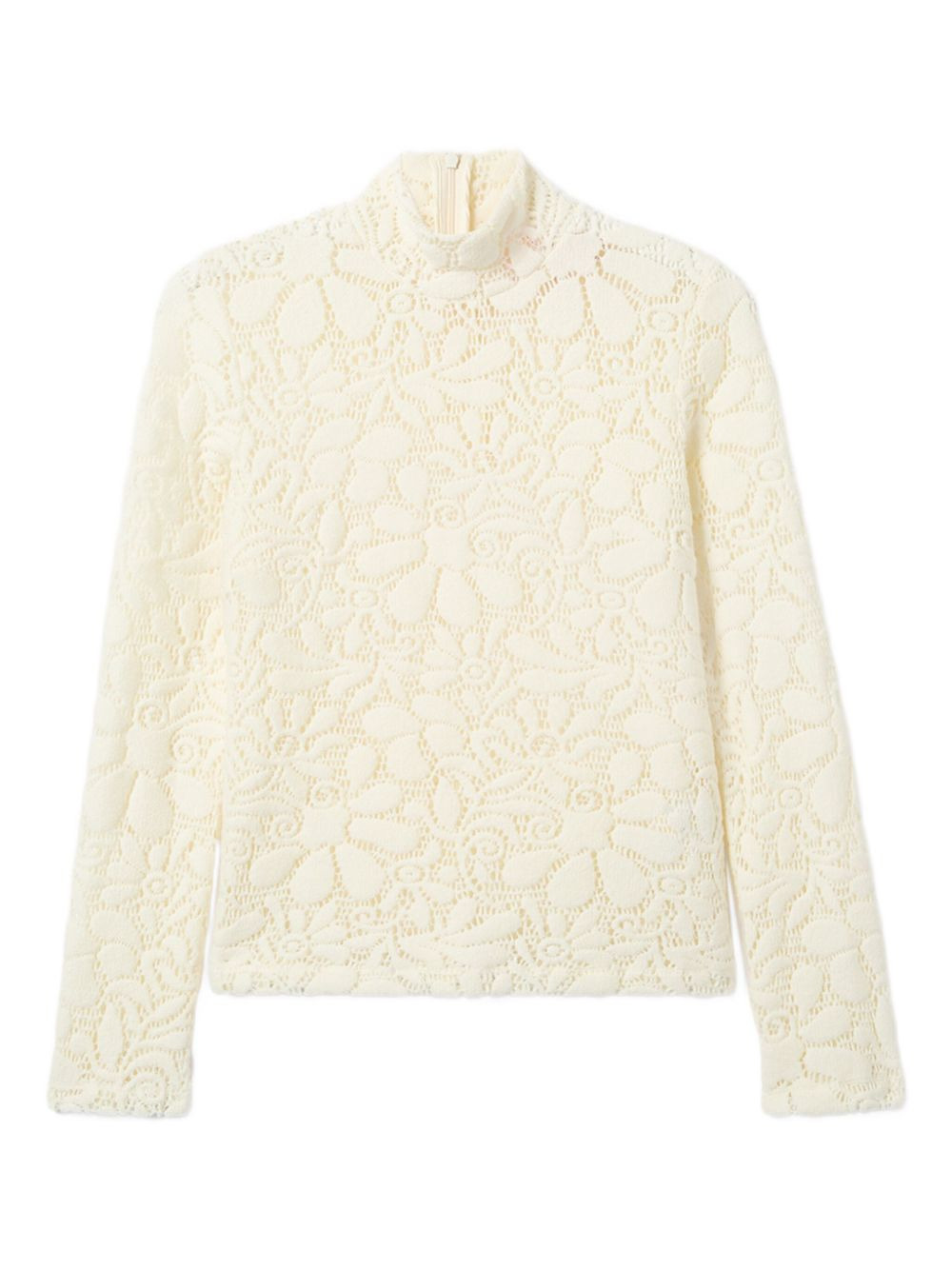 floral-pattern lace turtleneck top Highlights - Off-white - Floral pattern - High neck - Long sleeves - Zip fastening - Wool blend Made in Italy Composition Wool 90%, Polyamide 10% Washing instructions Read Manufacturer Guidelines