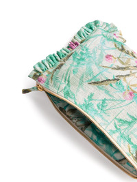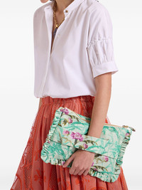 floral-print clutch bag Highlights - Mint green - Top zip fastening - Single flat side handle - Ruffled detailing - Full lining Made in Italy Composition Outer: Cotton 98%, Elastane 2% SIZE & FIT Measurement HEIGHT 9.05 in(23 cm) WIDTH 12.99 in(33 cm)