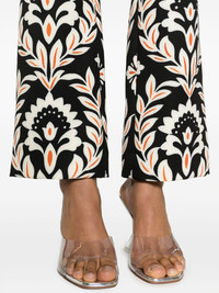 floral-print cropped trousers Highlights - Black/off-white - Stretch-design - All-over floral print - Belt loops - Concealed front fastening - Two side slit pockets - Two rear jetted pockets - Cropped leg Made in Italy Composition Polyester 88%, Elastane 12% SIZE & FIT Model measurements Height 5 ft 10 in(1.77 m) Bust/Chest 33.07 in(84 cm) Hips 37 in(94 cm) Waist 24.8 in(63 cm) Measurement FRONT RISE 9.44 in(24 cm) INSIDE LEG 27.55 in(70 cm) HIPS 33.07 in(84 cm) WAIST 27.55 in(70 cm) FittingInformation Designed with a flared hem, these trousers allow for a close fit at the waist with a slim fit over the leg and widening towards the hem Made from a midweight stretch fabric, this piece offers elasticity and flexibility when worn This piece fits true to size – take your usual size Washing instructions Machine Wash