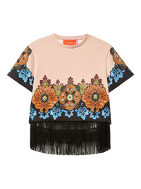 floral-print fringe t-shirt Highlights - Pink - Floral print - Short sleeves - Crew neck - Cotton Made in Italy Composition Cotton 100% Washing instructions Read Manufacturer Guidelines
