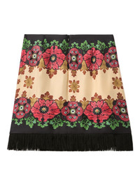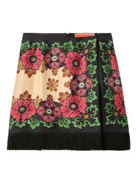 floral-print fringed skirt Highlights - Black - Silk - Floral pattern - Fringed hem - Mini length Made in Italy Composition Silk 100% Washing instructions Read Manufacturer Guidelines