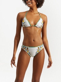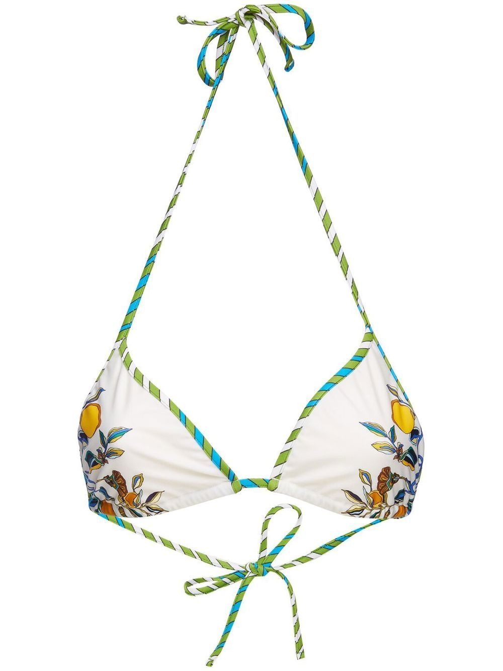 floral-print halterneck bikini top white/multicolour stretch-design floral print triangle cup halterneck tie fastening rear tie fastening Be mindful to try on swimwear over your own garments. Made in Italy Composition Polyamide 80%, Elastane 20%