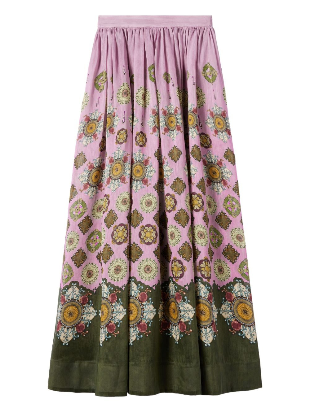 floral-print maxi skirt Highlights - Pink - Floral print - Elasticated waistband - Green hem Made in Italy Composition Linen/Flax 48%, Cotton 28%, Silk 24% Washing instructions Read Manufacturer Guidelines