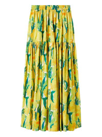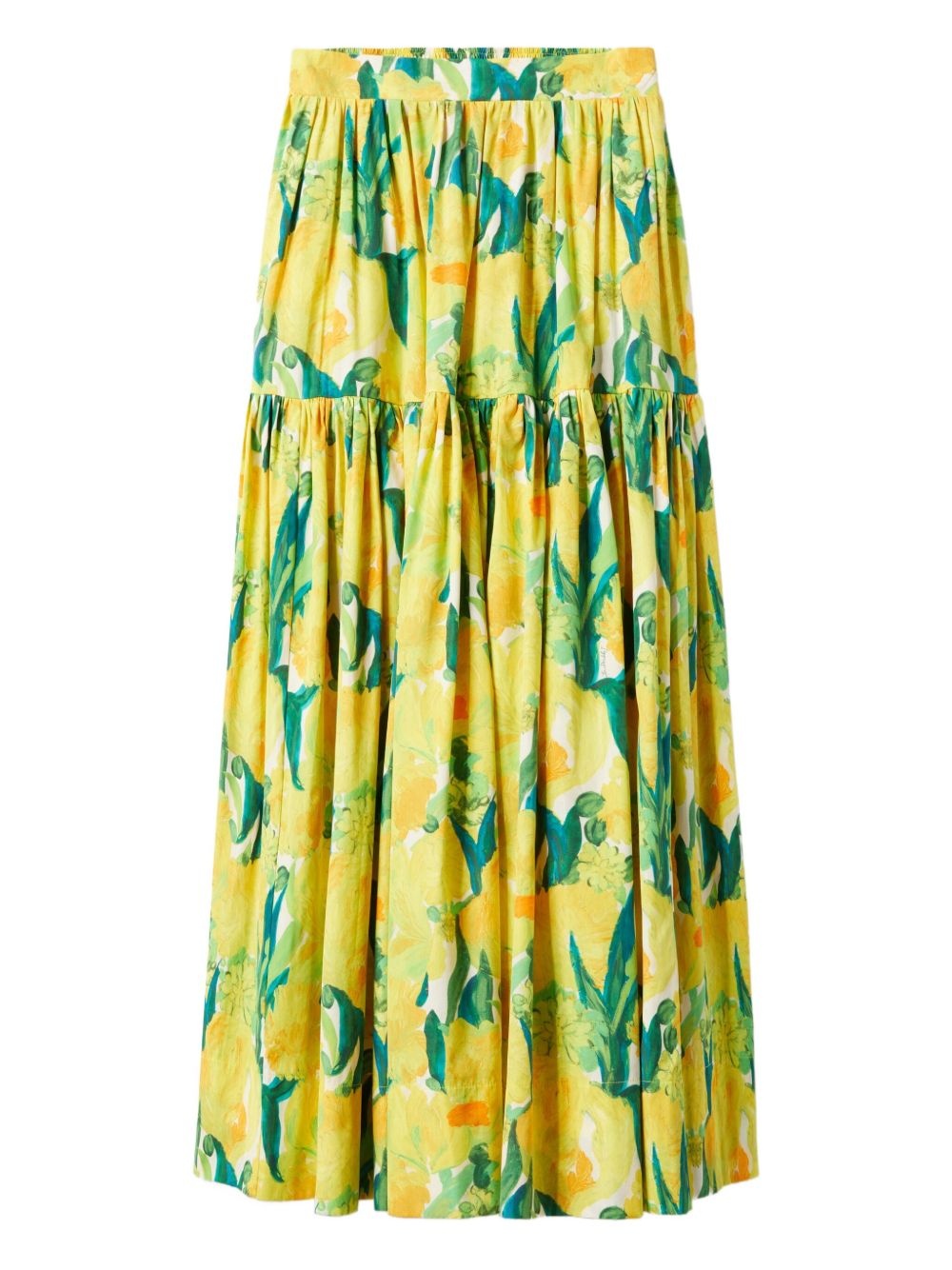 floral-print midi skirt Highlights - Yellow - Green floral design - Elasticated waistband - Tiered ruffle detailing - Mid length Made in Italy Composition Cotton 100% Washing instructions Read Manufacturer Guidelines