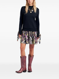 floral-print mock-neck mini dress Highlights - Black - Floral print - Tie detail - Long sleeves - Round neck - Attached skirt Made in Italy Composition Silk 100%, Cotton 80%, Polyester 20% Washing instructions Read Manufacturer Guidelines
