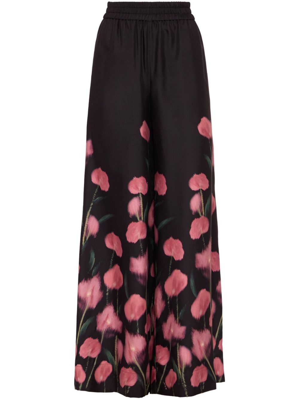 floral-print palazzo pants Highlights - Black - Elasticated waistband - Wide leg Made in Italy Composition Silk 100%