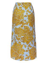 floral-print pencil skirt Highlights - Mustard yellow/light blue - Stretch-cotton - All-over floral print - Pencil silhouette - Concealed rear zip fastening - Rear slit - Straight hem - Mid-length - Contrast lining Made in Italy Composition Cotton 98%, Elastane 2%