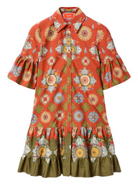 floral-print ruffled dress Highlights - Rust - Floral pattern - Ruffled hem - Bell sleeves - Collared neckline - Button fastening Made in Italy Composition Cotton 100%