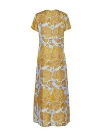 floral-print silk maxi dress Highlights - Light blue/yellow - Silk - Twill weave - Floral print - Round neck - Rear zip fastening - Short sleeves - Flared design - Ankle-length - Straight hem Made in Italy Composition Silk 100%