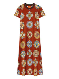 floral-print swing dress Highlights - Red - Floral pattern - Short sleeves - Round neck - Midi length Made in Italy Composition Cotton 100% Washing instructions Read Manufacturer Guidelines