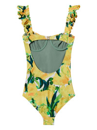 floral swimsuit Highlights - Yellow - Floral print - Ruffles straps - Underwired cups - Low back - Open back - Be mindful to try on swimwear over your own garments. Made in Italy Composition Polyamide 80%, Elastane 20% Washing instructions Read Manufacturer Guidelines