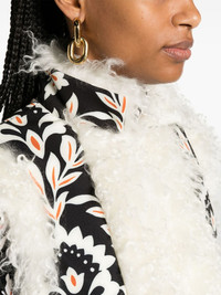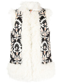 Folk floral-print vest Highlights - White/black/orange - Faux-shearling trim - Floral print - Stand-up collar - Hook fastening - Sleeveless - Straight hem Made In Italy Composition Polyester 44%, Mohair 40%, Elastane 8%, Polyamide 8% SIZE & FIT Model measurements Height 5 ft 11 in(1.8 m) Bust/Chest 31.49 in(80 cm) Hips 35.82 in(91 cm) Waist 24.8 in(63 cm) Measurement LENGTH 25.98 in(66 cm) WAIST 40.94 in(104 cm) BUST 38.58 in(98 cm) FittingInformation Designed for a relaxed fit, this piece allows for comfort and movement when worn Made from a padded non-stretch fabric, giving it no natural elasticity This piece fits true to size – take your usual size