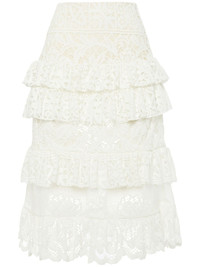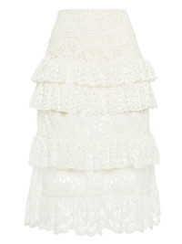 Footloose lace midi skirt Highlights - White - Cotton blend - Mid-rise - Tiered skirt - Side zip fastening - Lace panels - Below-knee length - Unlined - Mid-length Made in Italy Composition Cotton 76%, Polyamide 24% Washing instructions Read Manufacturer Guidelines