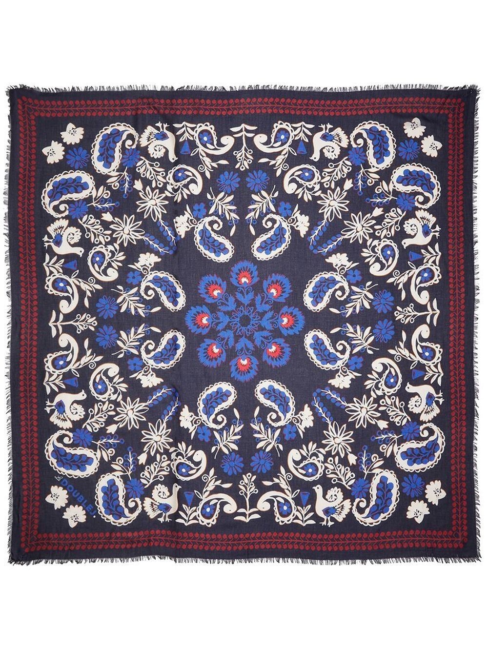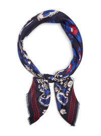 Forest bandana-print scarf Highlights - Navy blue/multicolour - Modal-silk blend - Square body - Bandana print - Frayed edge Made in Italy Composition Modal 85%, Silk 15%