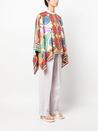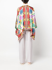 Foulard asymmetric silk shirt Part shirt, part poncho, the Foulard piece encapsulates La DoubleJ's joyful spirit. Handmade from silk satin, it boasts an exclusive print that speaks to Milan's Liberty era, while the asymmetric design adds movement to the garment. Highlights - Red/multicolour - Silk - Satin finish - All-over floral print - Band collar - Front button fastening - Long sleeves - Asymmetric hem Made in Italy Composition Silk 100% SIZE & FIT Model measurements Height 5 ft 11 in(1.8 m) Bust/Chest 31.49 in(80 cm) Hips 35.43 in(90 cm) Waist 24.4 in(62 cm) Measurement SLEEVE LENGTH 21.65 in(55 cm) LENGTH 25.19 in(64 cm) BUST 49.6 in(126 cm) WAIST 49.6 in(126 cm) FittingInformation Designed to be unstructured, offering a loose fit throughout Made from a lightweight non-stretch fabric This piece fits true to size – take your usual size