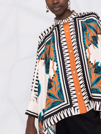 foulard-design shirt multicolour silk foulard design geometric print front button fastening long wide sleeves Made in Italy Composition Silk 100% SIZE & FIT Model measurements Height 5 ft 11 in(1.8 m) Bust/Chest 32.67 in(83 cm) Hips 36.22 in(92 cm) Waist 24.4 in(62 cm) FittingInformation This piece fits true to size. We recommend you get your regular size Cut for a loose fit Made with a mid-weight fabric Washing instructions Dry Clean Only