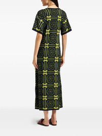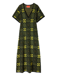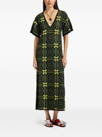 geometric-embroidered midi dress Highlights - Black and yellow - V neck - Short sleeves - All-over geometric pattern - Contrasting trim Made In Italy Composition Cotton 71%, Viscose 29%