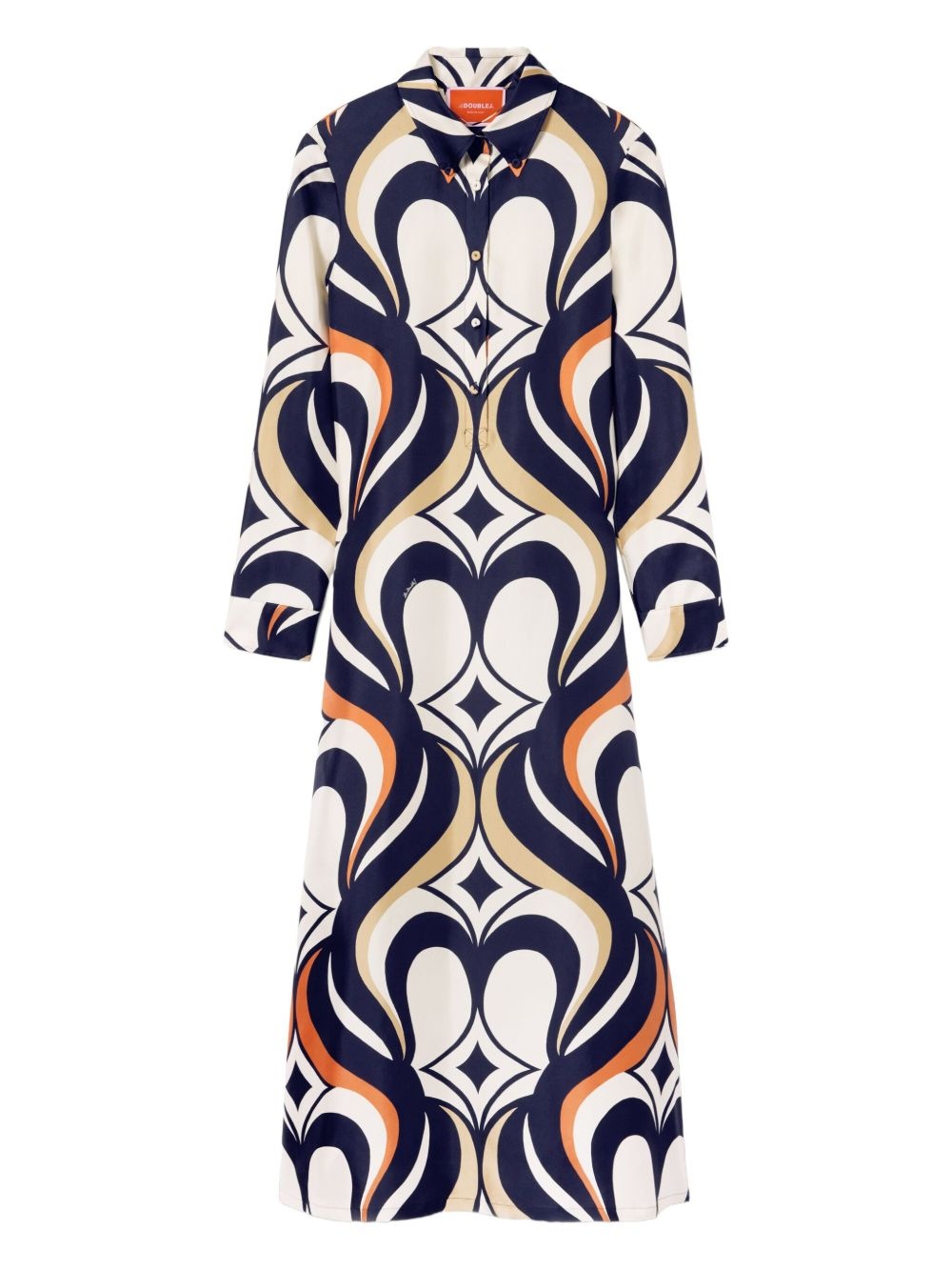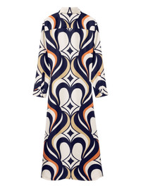 geometric-print dress Highlights - Off-white and navy blue - Orange detailing - Abstract print - Long sleeves - Classic collar Made in Italy Composition Silk 100% Washing instructions Read Manufacturer Guidelines