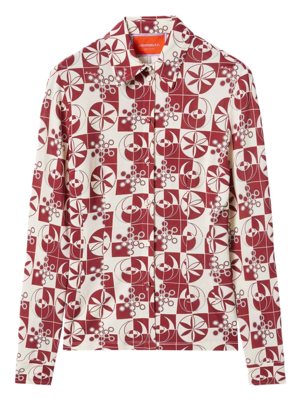 geometric-print shirt Highlights - Burgundy - Front button fastening - Classic collar - Long sleeves - Buttoned cuffs Made in Italy Composition Viscose 92%, Elastane 8%