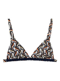 geometric-print triangle bikini top Highlights - White and navy blue - Geometric print - Triangle shape - Adjustable straps - Embroidered band - Clasp fastening - Be mindful to try on swimwear over your own garments. Made in Italy Composition Polyamide 80%, Elastane 20% Washing instructions Read Manufacturer Guidelines