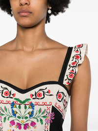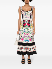 Gingerbread floral maxi dress Highlights - Ivory white/black/multicolour - Stretch-cotton - Twill weave - All-over floral print - Sweetheart neck - Sleeveless - Ruffled detailing - Internal logo tag - Long length - Ruffle hem - Concealed rear zip fastening Made in Italy Composition Cotton 97%, Elastane 3% SIZE & FIT Model measurements Height 5 ft 10 in(1.77 m) Bust/Chest 33.07 in(84 cm) Hips 37 in(94 cm) Waist 24.8 in(63 cm) FittingInformation Designed for a close fit at the chest and waist with a loose fit at the hip Made from a midweight stretch fabric, this piece offers elasticity and flexibility when worn This piece fits true to size – take your usual size