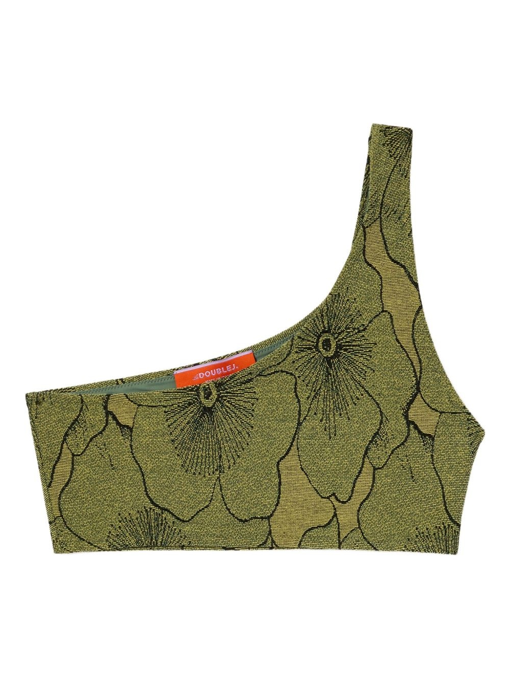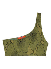 Goddess bikini top Highlights - Olive green - One-shoulder design - Floral pattern - Elasticated edges - Be mindful to try on swimwear over your own garments. Made in Italy Composition Viscose 66%, Polyamide 22%, Metal (Other) 9%, Elastane 3% Washing instructions Read Manufacturer Guidelines