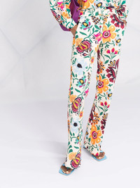 graphic-print flared trousers multicolour cotton graphic print concealed front fastening two side slit pockets flared design Made in Italy Composition Cotton 97%, Elastane 3% SIZE & FIT Model measurements Height 5 ft 11 in(1.8 m) Bust/Chest 31.49 in(80 cm) Hips 35.82 in(91 cm) Waist 24.8 in(63 cm) Measurement FRONT RISE 10.03 in(25.5 cm) INSIDE LEG 33.07 in(84 cm) BACK RISE 14.37 in(36.5 cm) HIPS 37 in(94 cm) WAIST 27.55 in(70 cm) FittingInformation This piece fits true to size. We recommend you get your regular size Designed to be fitted at the waist and through the thigh, loose from the knee Made with a mid-weight stretch fabric Washing instructions Machine Wash