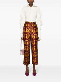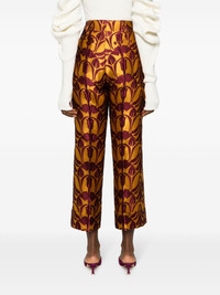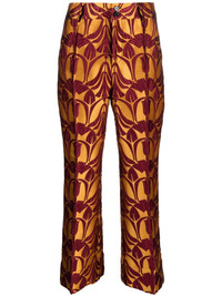 Hendrix jacquard cropped trousers Displaying La DoubleJ's vibrant Italian style, the Hendrix trousers are defined by a jacquard motif throughout. The colourful style features a cropped silhouette, adding a contemporary twist to the tailored style. Highlights - Gold-tone/red - Full jacquard - Concealed fly and button fastening - Belt loops - Straight leg - Cropped Made in Italy Composition Polyester 61%, Recycled Polyester 39% SIZE & FIT Model measurements Height 5 ft 10 in(1.78 m) Bust/Chest 31.49 in(80 cm) Hips 37 in(94 cm) Waist 23.62 in(60 cm) FittingInformation Designed with a flared hem, these trousers allow for a close fit at the waist with a slim fit over the leg and widening towards the hem Made from a midweight non-stretch fabric This piece fits true to size – take your usual size Washing instructions Dry Clean Only